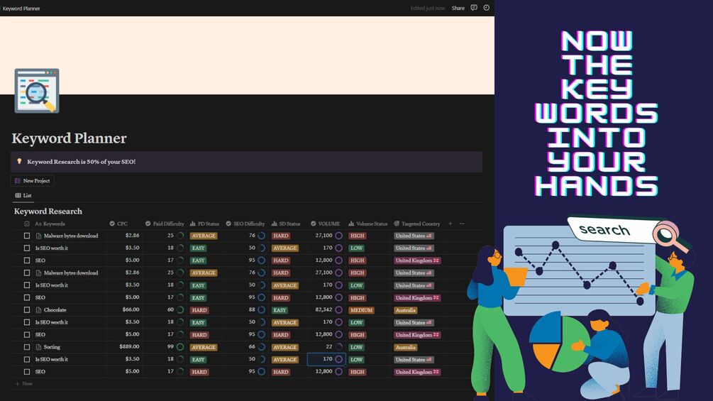 The SEO Keyword Planner Notion Template!